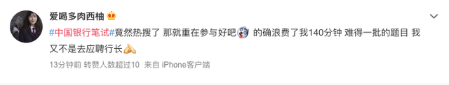 不过,她认为,银行考试的知识点庞杂,一些比较难的题目大家都不会,主要看分数排名,也不用太灰心。