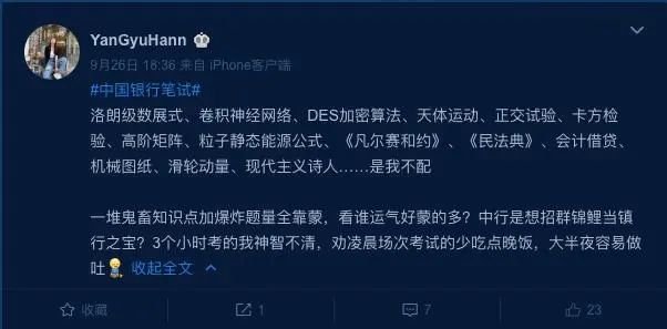 9月26日下午,“中国银行考试”这一话题冲上微博热搜。