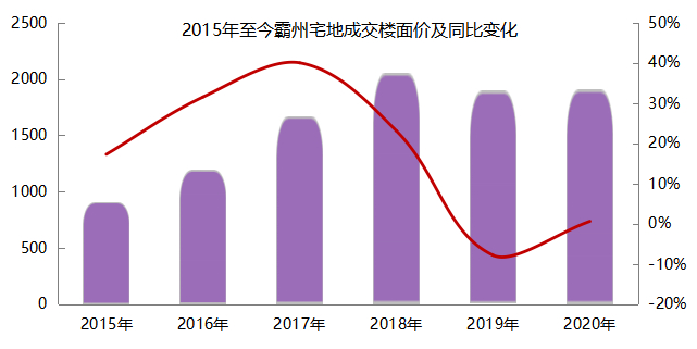 土地价值方面,借势京津冀协同发展,以及雄安新区规划建设的重大战略机遇,同时,随着大兴国际机场和京雄铁路的落成运营,霸州市交通、产业、生态等条件都得到了很大的改善,区域价值不断被放大,带动区域房地产市场的快速发展,带动霸州土地价值逐渐走高。从2015年至2019年,五年间霸州住宅用地成交楼面均价年均复合增长率达20%。
