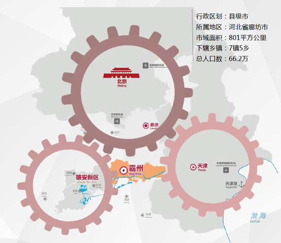 根据雄安新区的战略定位,雄县作为高新产区组团,承接北京高校、医院、高新科技产业等,成为整一个新区产业布局的中心。而霸州位于雄县东北方,将会享受到产业发展带来的利好。高新产业的辐射以及得天独厚的区位优势,将会为霸州带来明显的就业机会,同时霸州地区环绕了整个高新技术产业区,也将导入高端制造业,新区全新的中高端技术产业制造基地。同时,大兴国际机场临空经济区也确立了服务保障区、航空物流区、科技创新三大功能区,其中科技创新区位于整个临空经济区的南部,在未来的发展中,临空经济区的产业集群辐射也将极大程度的影响霸州产业发展,加快高新技术发展,积极探索“智慧城市”建设,推进智慧城市数字化管理,率先实现城市管理智能化。随着产业迁移带来的人才流动,也将稳固霸州在高新产业发展中的核心力量。据统计,霸州已拥有民营企业29000多家,形成了以钢木家具、机械制造、现代食品、乐器制造和商贸物流为主的产业集群,产品达3000多种,其中近千种产品打入国际市场,为霸州创造了95%的税收收入和84%的农民收入。