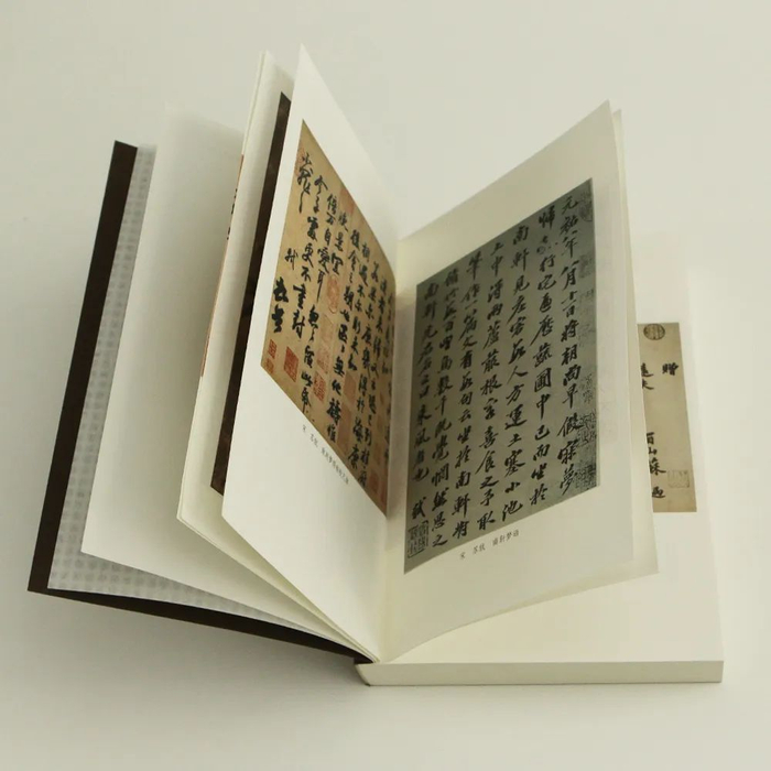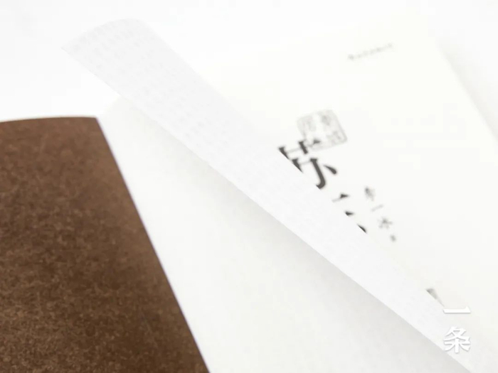 护封采用纹理极强的手揉纸,粘贴斜切纹理温厚的环保幼棉,并烫金印鉴。