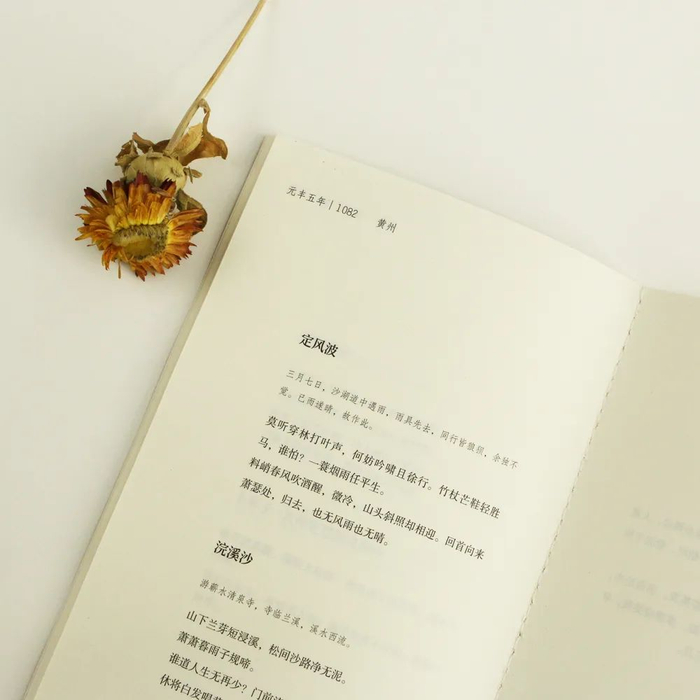 本子的装帧与书的封面相呼应,内文按照东坡的人生轨迹,选取了他在不同时间、地点所写的诗词。