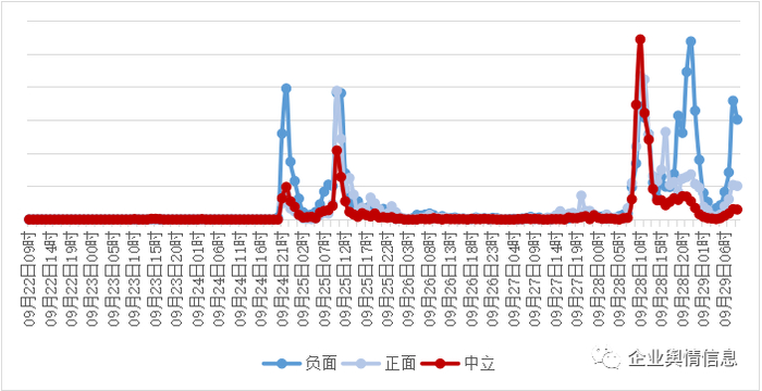 从09月22日09时到09月29日09时,全网有关“厉家菜”的舆情数据为17,275条,主要来源于“微博”(共15170条,占87.8%),其次为“微信公众号”(共266条,占1.5%);信息内容主要以 负面 为主,占47.9%。时间趋势: