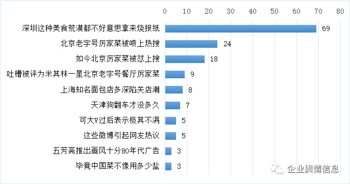 通过抽样以及内容聚类分析可知,舆论关注的焦点主要围绕“深圳这种美食荒漠都不好意思拿来烧报纸”展开,相关舆情量占比为45.7%。其次是有关“北京老字号厉家菜被喷上热搜”以及“如今北京厉家菜被怼上搜”的话题,舆情量占比分别15.9%和11.9%。
