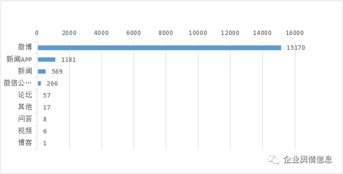 从整体上看,有关“厉家菜”的舆情主要集中在“微博”平台,“微博”平台舆情量共15170条,占总量的87.8%。其次为“新闻APP”平台(共1181条,占6.8%)以及“新闻”(共569条,占3.3%)。