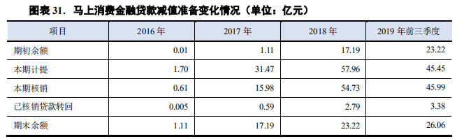 同时,自2017年开始,马上消费金融的拨备池出现了两个变化:一是新计提贷款减值准备大幅增长,以覆盖未来风险;二是加大不良资产处置力度,坏账核销大幅增加。