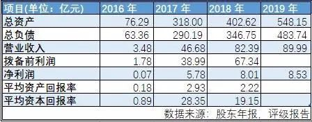 资料显示,2016—2019年,马上消费金融的总资产分别为76亿元、318亿元、402亿元、548亿元,净利润分别为0.065亿元、5.78亿元、9.01亿元、8.53亿元。