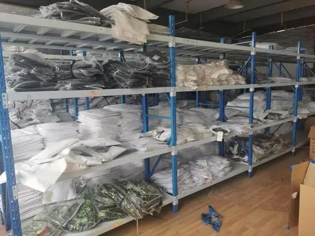 仓库内堆满名牌服饰