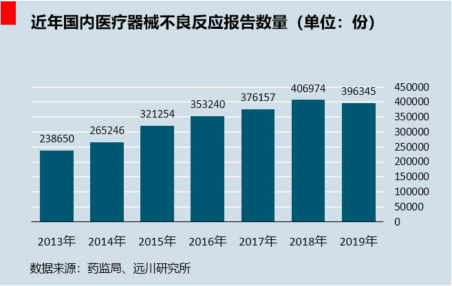 然而现实情况是,因为起步时间晚,很多国产器械只能走低端化路线,但质量始终没能迎头赶上。所以,近几年国内医疗器械市场规模在不断扩大,而不良反应报告也逐年增多,直到2019年才有所好转。