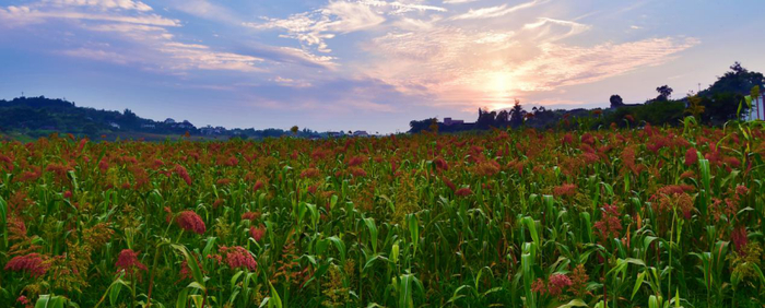 这里成熟后的极品糯红高粮呈紫红色,粒卵呈圆形皮薄红润、颗粒饱满,籽粒丰硕沉淀,千粒重约16g。其杂质含量低、营养成分高,淀粉含量为62.8%,支链淀粉比额超过95%。