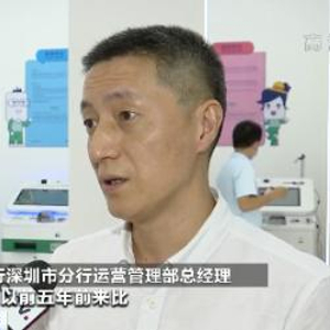 在深圳市的一处银行网点外,记者见到了一台仍在运行的ATM机。营业网点人来人往,这台机器却鲜有人问津。记者了解到,5年前这处网点刚投入使用时,这里还有4台自动取款机,最近银行对该网点进行了升级,最终决定只保留一台。
