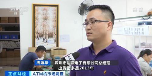 深圳市达沃电子有限公司总经理 周勇华:出货最多是2013年,因为移动支付的出现,从2014年到现在对ATM机的市场需求相当少,印象中我目前留下的客户可能就两三家,以前一个月订单大概200台,现在估计只有几十台。
