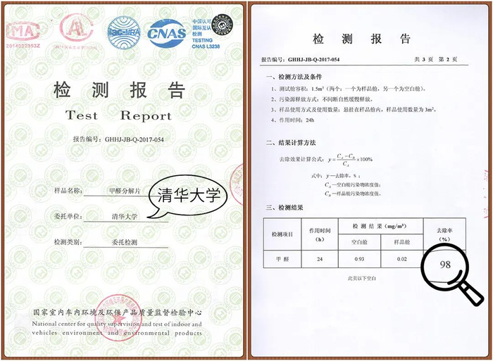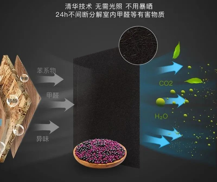 这种分解毡能快速彻底地将甲醛分解为水和二氧化碳,且除醛率高达98%。