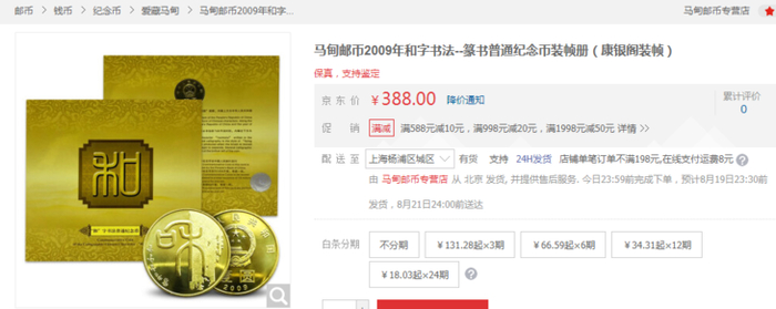 2009 年的和字纪念币篆书版,如今市场价格涨至 388 元一枚,翻了足足 300 多倍!