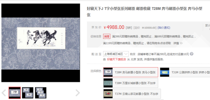 1978 年发行的《奔马图》小型张,目前市场价 4988 元一枚。