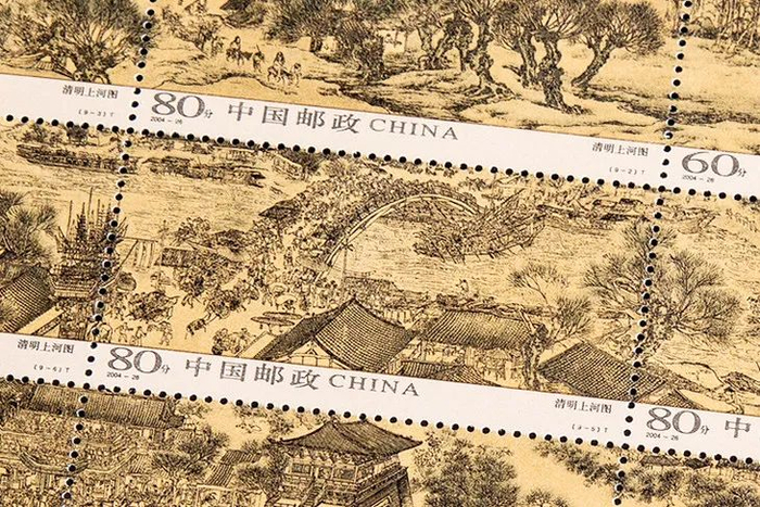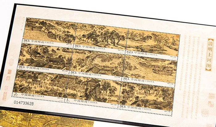 《清明上河图》是中国第一套古画九连票,采用国际先进胶雕印刷机,雕刻版规模远超前人,每一处都足以与原作相媲美。