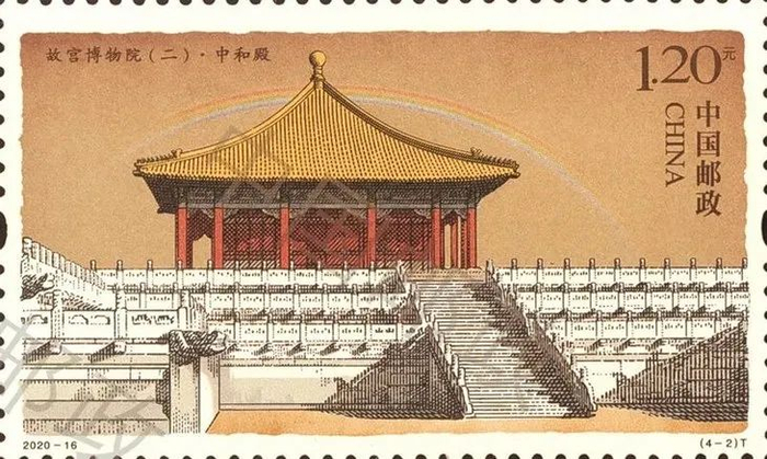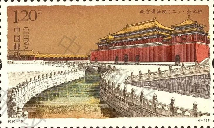 与以往故宫邮票不同,故宫(二)小版张图案第一次选取金水桥、中和殿、乾清宫、千秋亭作为主要内容。
