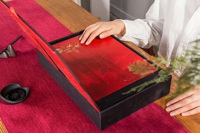 盒盖红如故宫墙一般,皮面显档次有质感,作为节日赠礼非常合适。