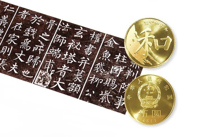 纪念币「和」字出自颜真卿的《颜勤礼碑》:「更唱和者二十首」。