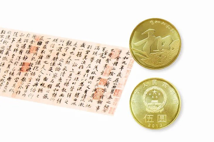 纪念币「和」字出自王羲之的《兰亭序》里「永和九年,岁在癸丑」。