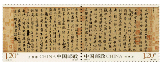 行书:邮票书法选自天下第一行书《兰亭序》、天下第二行书《祭侄文稿》、天下第三行书《黄州寒食帖》。