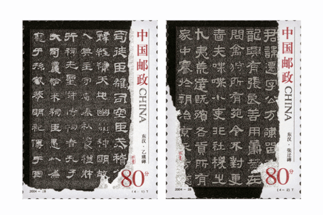 隶书:邮票书法选自中国四大隶书《乙瑛碑》《张迁碑》《曹全碑》《石门颂》。