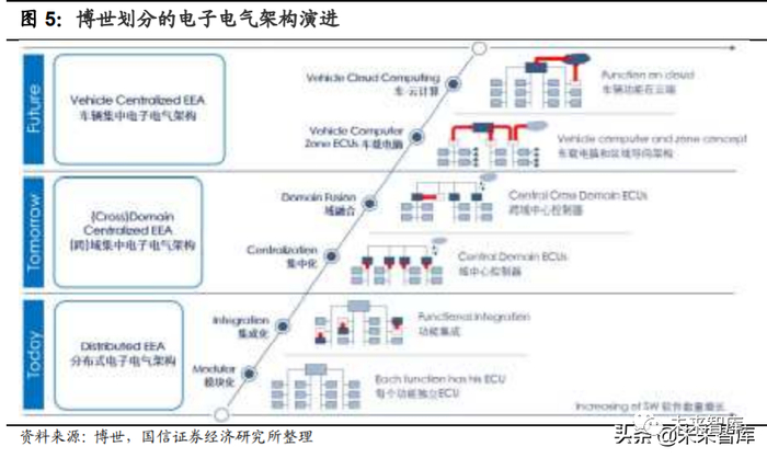 趋势 1.往车辆集中式电子电气架构发展,功能中心化