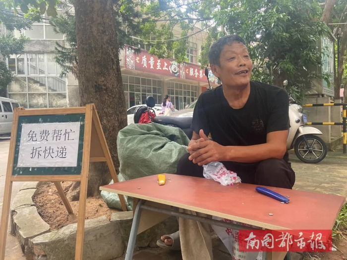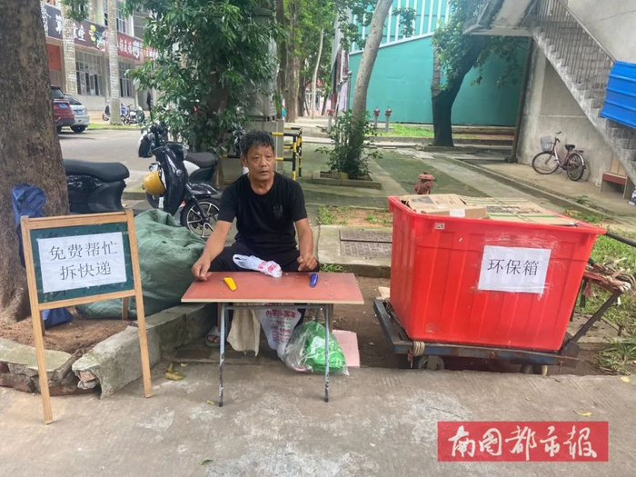 海口一大爷免费帮人拆快递,回收纸箱卖废品日入近百元