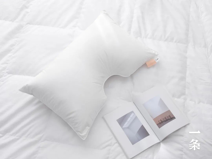 这个枕头的弧度,是照着我们的头颈曲线而设计的,脑袋一枕上,正好贴合它的弧边,超合拍。