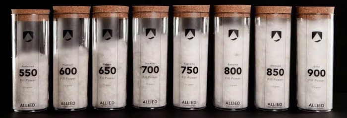 蓬松度也是鉴别羽绒质量的一个参考,它指的是每一盎司(30克)羽绒所占体积(立方英寸)。
