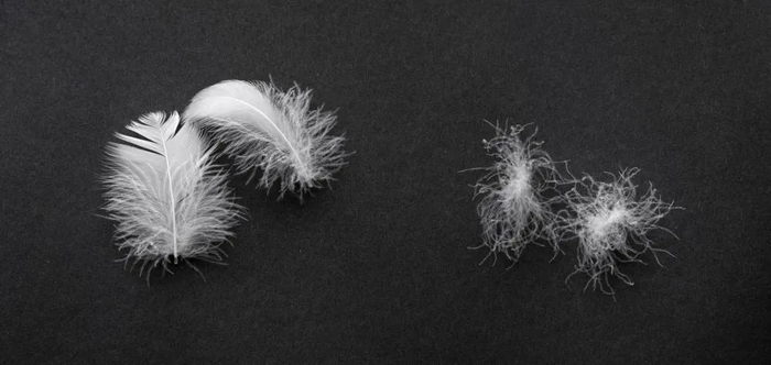 羽绒一般分为鹅绒和鸭绒,因为鸭子个头小,而且是杂食性动物,鸭绒的绒朵比较小,而且有股子腥臭味。