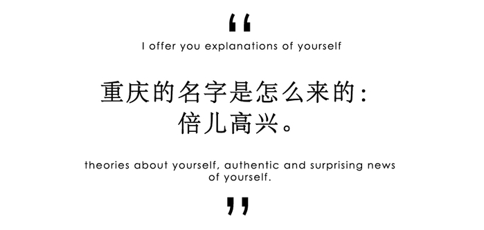 当然,怎么解释不重要。我们还是更喜欢「双重喜庆」的美好寓意。重庆,就是双重喜庆,就是倍儿高兴。
