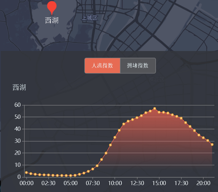 10月1日,西湖人流指数。图片来源:百度地图
