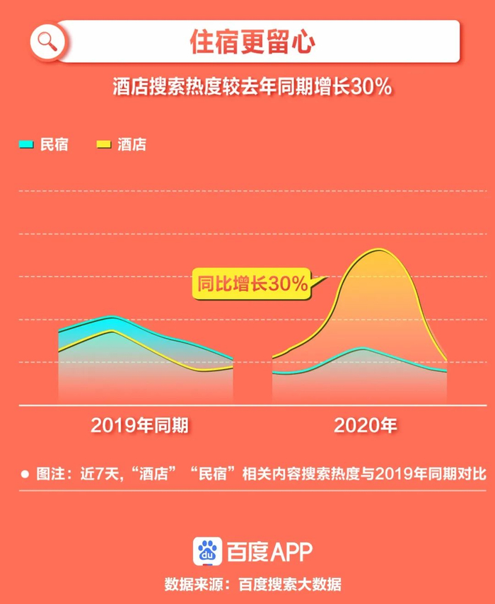 受周边游需求拉动,城市近郊的民宿、别墅、度假酒店等来自本地的预订量增长明显,部分城市周边的民宿及度假酒店出现了“一房难求”的情况,适合家庭住宿的别墅或套房需求也很旺盛,价格也随之出现了不同幅度的上浮。