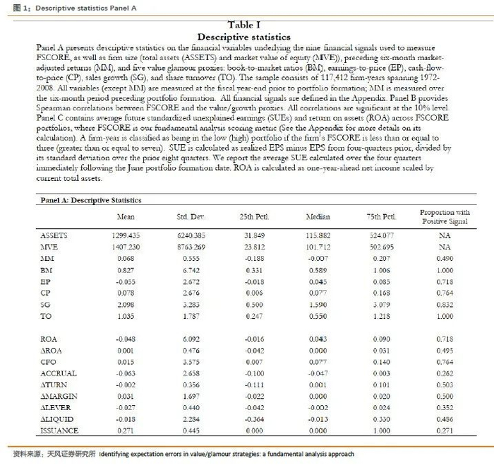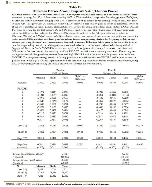 文献来源:Piotroski, J. D. , & So, E. C. . (2012). Identifying expectation errors in value/glamour strategies: a fundamental analysis approach. Review of Financial Studies, 25(9), 2841-2875.