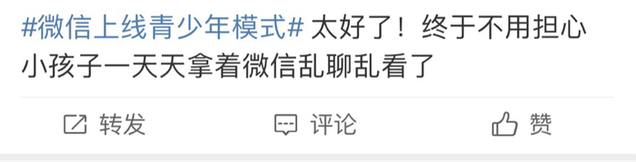 微信“青少年模式”一上线就引发了网友的热议。不少网友表示,这个举措值得点赞。还有家长表示,再也不用担心小孩子看微信了。