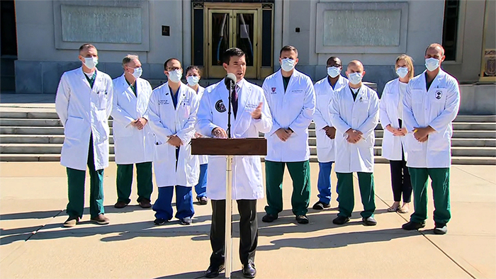 在美国总统特朗普入住位于马里兰州的沃尔特·里德国家军事医疗中心接受治疗的第二天,当地时间10月3日上午,白宫总统医生团队对有关特朗普目前的情况向媒体召开了发布会。他们表示总统目前状态不错,没有出现发烧、呼吸困难等新冠病毒感染的一些症状。