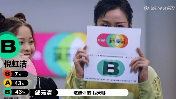 “那一瞬间我觉得心里特别尴尬。”同样出演了《过春天》的“祝无双”倪虹洁也只在评级中拿到了B,打开手卡的那一刻,她的表情管理瞬间都失效了,满脸都是不解。而在得知结果后,场内的演员同样惊呼不可思议,感慨“倪虹洁起码应该是A”。