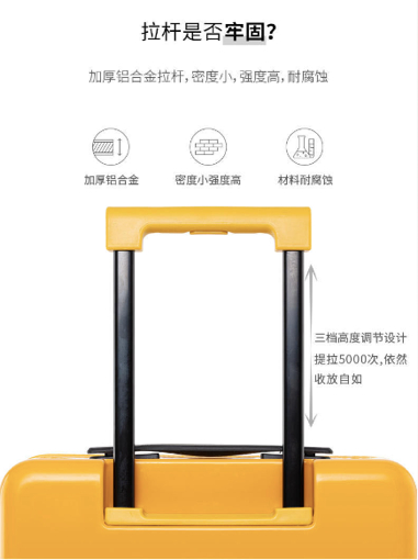 加厚铝合金拉杆,采用耐腐蚀材料,提拉5000 次依然收放自如。