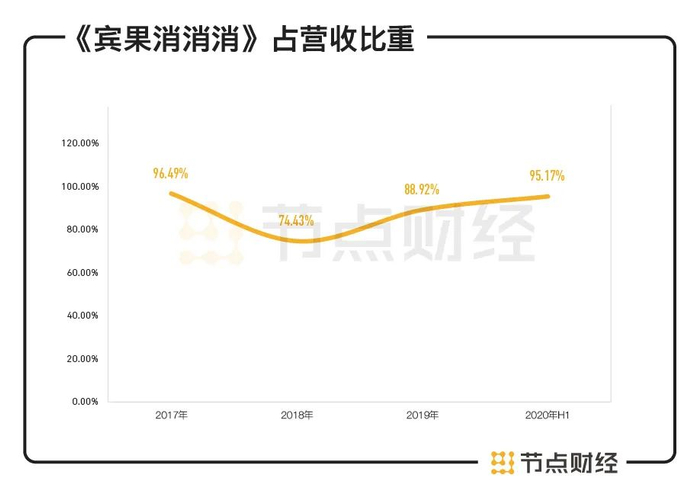 2017年-2019年及2020年1-6月,《宾果消消消》分别为公司带来了37380.93万元、24742.2万元、30968.96万元和10681.30万元的收入,该游戏收入占柠檬微趣当期主营业务收入的比重分别为96.49%、74.43%、88.92%和95.17%。