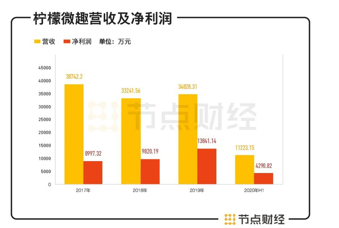 招股书显示,2017年-2019年及2020年1-6月,柠檬微趣的营业收入分别为38742.2万元、33241.56万元、34828.31万元和11223.15。净利润分别为8997.32万元、9820.19万元、13841.14万元和4290.82万元。