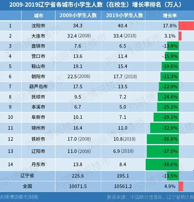 其三,这些城市多数人口增长乏力,部分城市人口持续流出。过去十年,黑龙江鹤岗、伊春、双鸭山的小学生数量减少了50%以上,吉林的白城白山等地也减少了30%以上,而辽宁的铁岭、阜新也减少了30%左右。