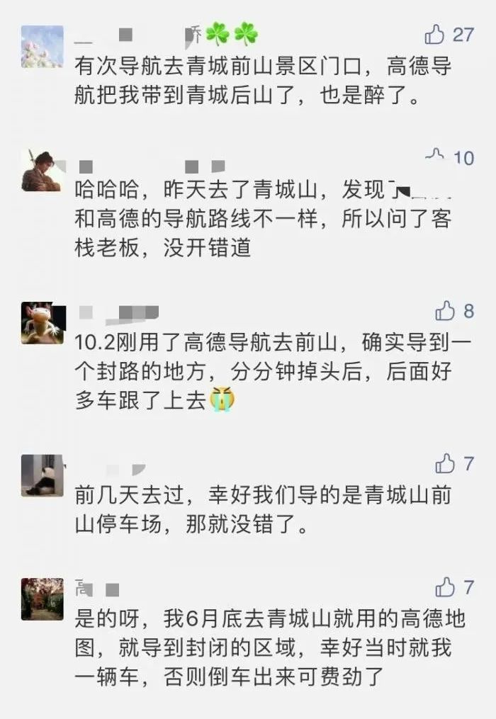 记者注意到,有不少网友吐槽因高德地图导航的问题,对其在青城山-都江堰景区游览带来的不便。