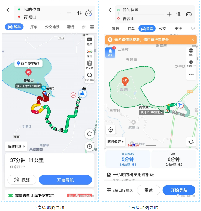 因此该景区建议,自驾游客游览青城山前山景区时,使用其他导航平台,以免对游客行程带来误导及不便。