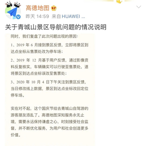 声明发出后不久,青城山-都江堰景区官方微博也回应称,高德地图方已主动联系景区,并及时修改了前往青城前山的定位及线路导航,请游客朋友们放心使用。