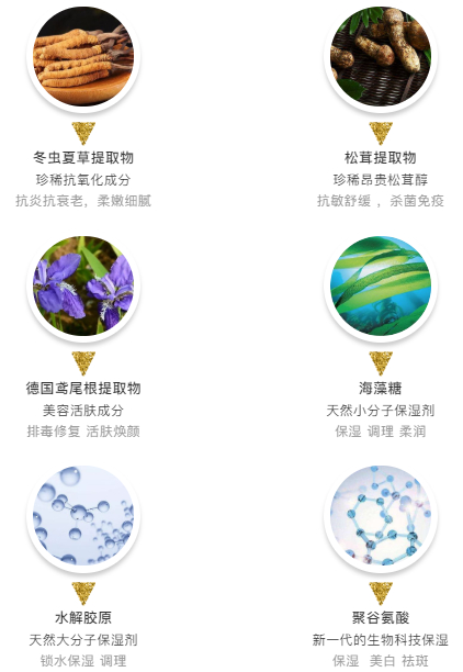 既有汉方草本,也有生物科技保湿柔嫩成分。