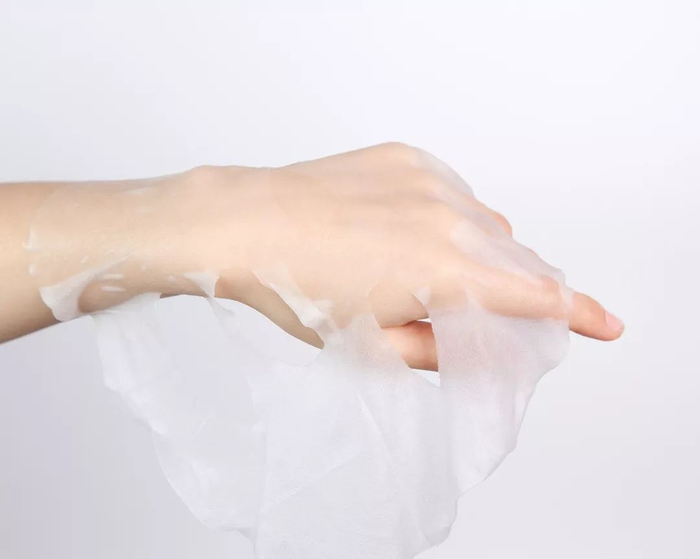 天丝的吸水性非常好,能吸附膜布自身重量的 10 倍精华。