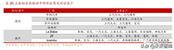 外资企业占比高,国内车企逐步布局。目前铝合金制动卡钳以外资企业占比多, 包含 brembo、ZF 等知名企业,配套了从豪华品牌到普通品牌的大部分车型。其中布 雷博制动系统 55%应用于高端乘用车,45%应用于普通车型,2019 年南京工厂投产 可生产 150万件制动卡钳配套;国内市场中,文灿股份拟收购百炼集团,若收购成功 则将大幅提升公司在铝合金刹车铸件领域的市场地位;同时伯特利专注制动领域 17 年,凭借其差压铸造工艺与良好的生产一致性,已在底盘轻量化市场占得一定优势, 目前对铸铝卡钳进行研发,预计通过自主研发打开铝制动卡钳市场,逐步扩张市场份 额。