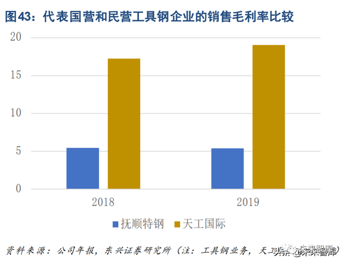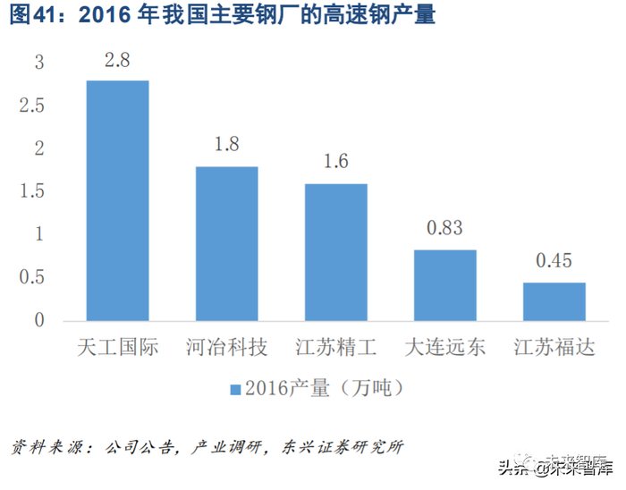 过去我国的合金工具钢生产企业是以东北特钢、宝钢特钢、长城特钢等传统国营钢厂为主,上述钢厂凭借着 先进的特冶装备和技术优势在国内的高端工具钢市场逐渐形成品牌效应,并以高品质获得了越来越广泛的市 场基础。我国中低端工具钢市场相对饱和且竞争更激烈,以天工国际、广大特材为代表的民营钢企凭借着灵 活、高效的经营体制和专业化、低成本的竞争优势快速成长。