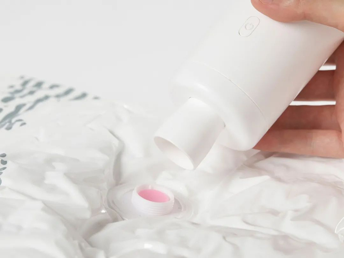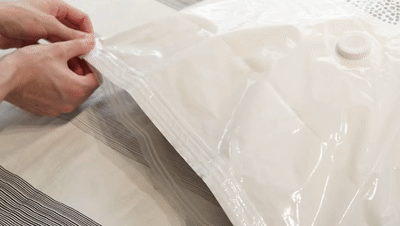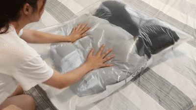 只需一个真空收纳袋,将衣服、被子装进去抽走多余的空气抽走,